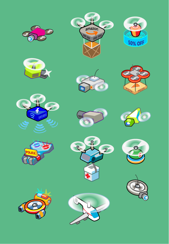 Some separate drafts of drones and colored sketches in Photoshop.