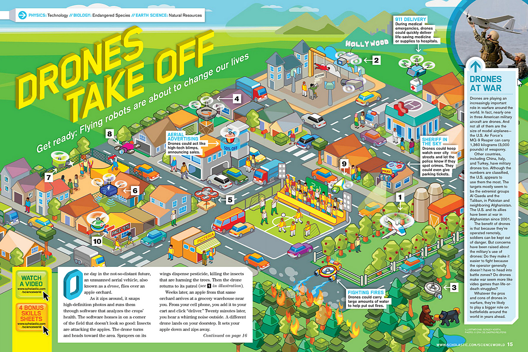 Here's my work to Lemonade Illustration Agency for Scholastic "Science World" magazine. There was article about drones, quadcopters and similar flying devices. Their usage in modern cities and interaction with people was main point for illustration.